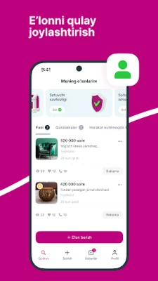 Bu yerda har kim o‘ziga kerakli narsani topadi — ish, qo‘shimcha daromad, vaqtinchalik turar joy yoki O‘zbekistonda foydali narxlarda gadjet va avtomobil xaridi bo‘lishi mumkin. Agar uyingiz yoki kvartirangiz bor-u, hayotda o‘zgarish istasangiz — bor-yo‘g‘i bir necha bosish bilan e’lon joylashtirib, qiziqqan xaridorlarga chiqishingiz mumkin.