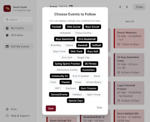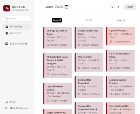 DE-Cal is a user-friendly school calendar app designed for the Dover-Eyota Music Association, listing school activities and sports schedules, providing regular updates and push notifications, and allowing users to personalize their calendar view. It simplifies the process of checking rehearsal times, planning for a concert, or staying up-to-date with sports schedules, making it a valuable tool for the Dover-Eyota Music Association community.