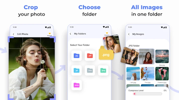 ✅Choose the compress level and reduce the image size to share pictures easily;