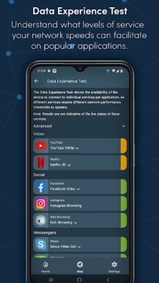 > Check whether connectivity is good enough for popular messaging, video calling, social networking, video streaming and gaming applications