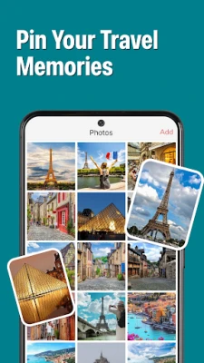 Add unlimited photos to each travel pin to create a visual trip diary on your country map