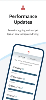 • Easily view your driving performance in your interactive dashboard and see how others on your policy are doing in the Performance section.